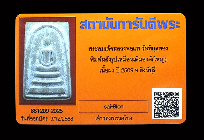สมเด็จหลังรูปเหมือน ปี.09 หลวงพ่อแพ ทองในพิมพ์ สวยๆครับ ..........................900