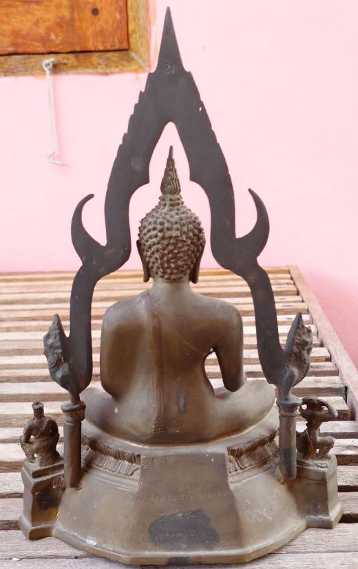 พระบูชา หน้าตัก 5 นิ้ว สมเด็จพระศรีเมืองทอง วัดต้นสน จ. อ่างทอง เนื้อทองเหลืองเก่า ซุ้มถอดได้