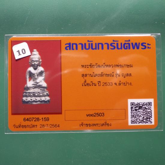 พระชัยวัฒน์เกษม เนื้อเงิน รุ่น ญสส หลวงพ่อเกษม เขมโก ทองแดง ปี 2533......10...68.4.29 |