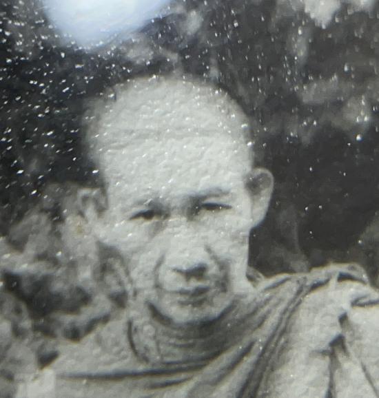 รูปของแสตมป์กระดาษหนังไก่ สวยคมชัด หลวงพ่อเกษม หลังจารนะ ก้านธูป สายสิน เลี่ยมวินเทจ |