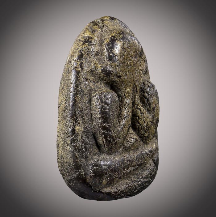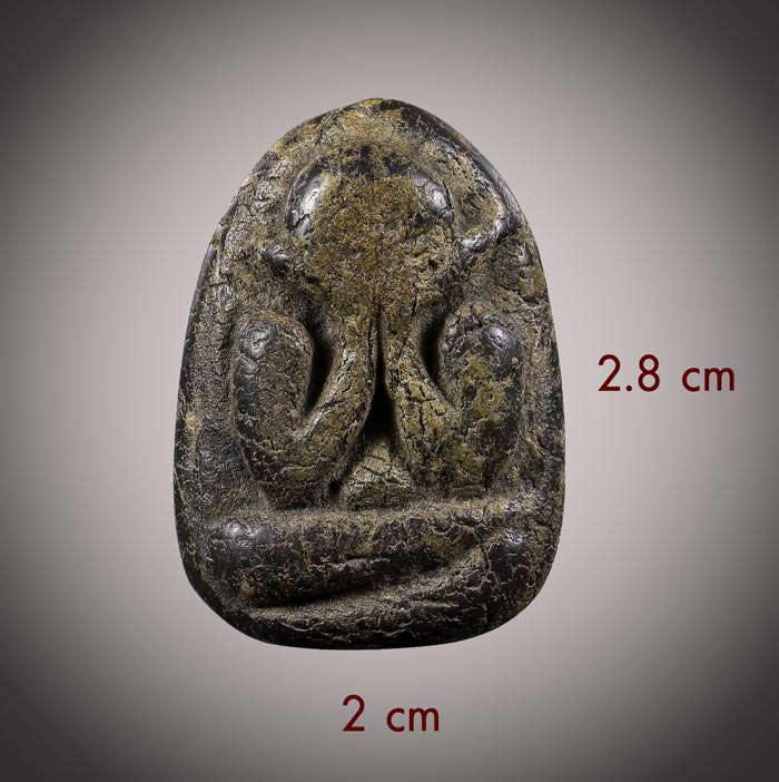 พระปิดตา เนื้อผงคลุกรัก (ไม่ทราบที่) สภาพเก่ามีอายุ ขนาดฐาน 2cm สูง 2.8cm |