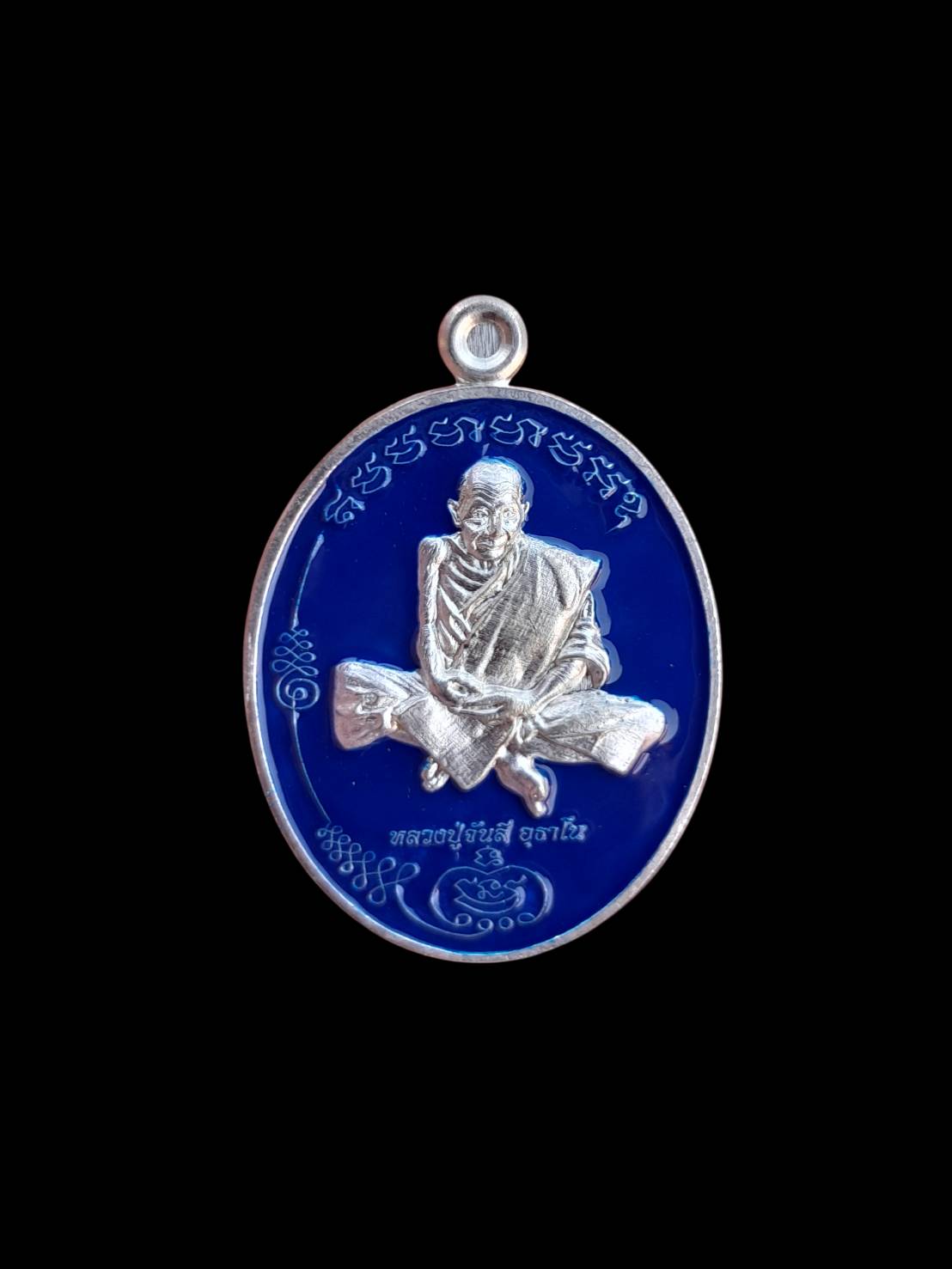 เหรียญมนต์พระกาฬปี61 หลวงปู่จันลี นครพนม เนื้อเงินลงยาน้ำเงิน เคาะเดียวแดง