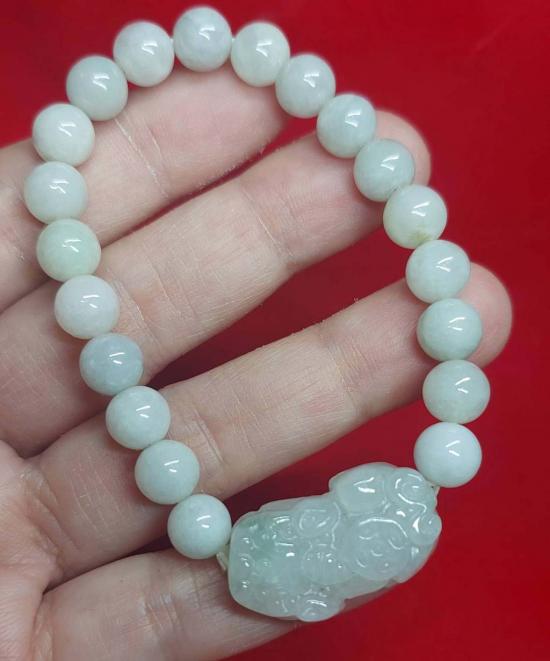 ***วัดใจ***สร้อยข้อมือปี่เซี๊ยะ หินหยกขาว 8 มิล |