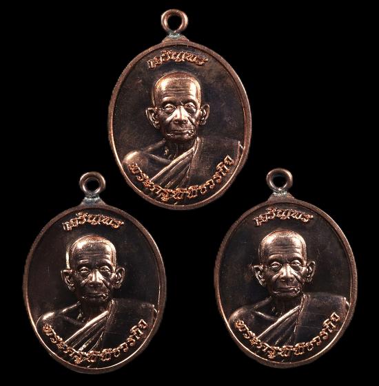 3องค์ เหรียญห่วงเชื่อมเจริญพร รุ่นแรก หลวงพ่อคล้อย วัดภูเขาทอง เนื้อทองสัตตองค์ทองชมภู รุ่นสัตตมงคล |