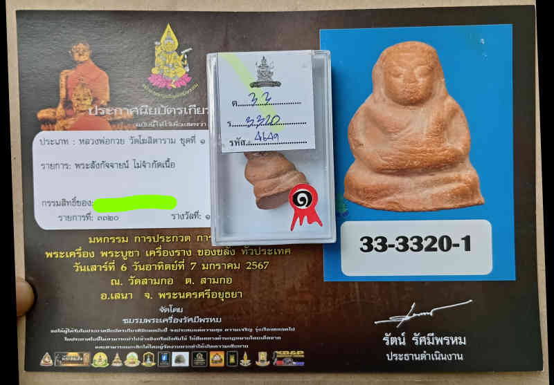 พระสังกัจจายน์หลวงพ่อกวยพิมพ์ฐานเตี้ย(นิยม.. เนื้อพระสรรค์)พร้อมใบประกาศติดรางวัลที่1วัดสามกอเคาะเดียวแดง |
