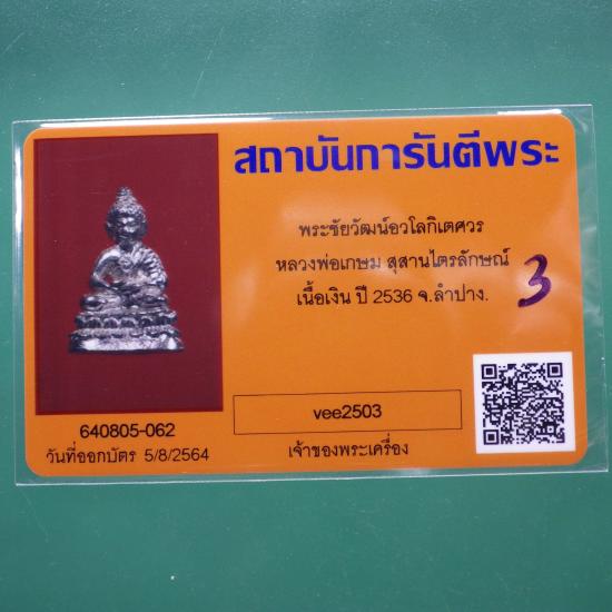 พระชัยวัฒน์ อวโลกิเตศวร82 เนื้อเงิน รุ่นกรรมการ หลวงพ่อเกษม ปี2536...3..68.4.15