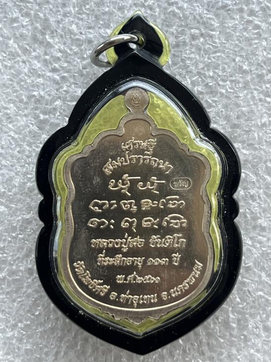 เหรียญเสมา รุ่นเศรษฐีสมปรารถนา หลวงปู่สอ ขันติโก วัดโพธิ์ศรี จังหวัดนครพนม อัลปาก้า หน้าทองลงยา เลข44