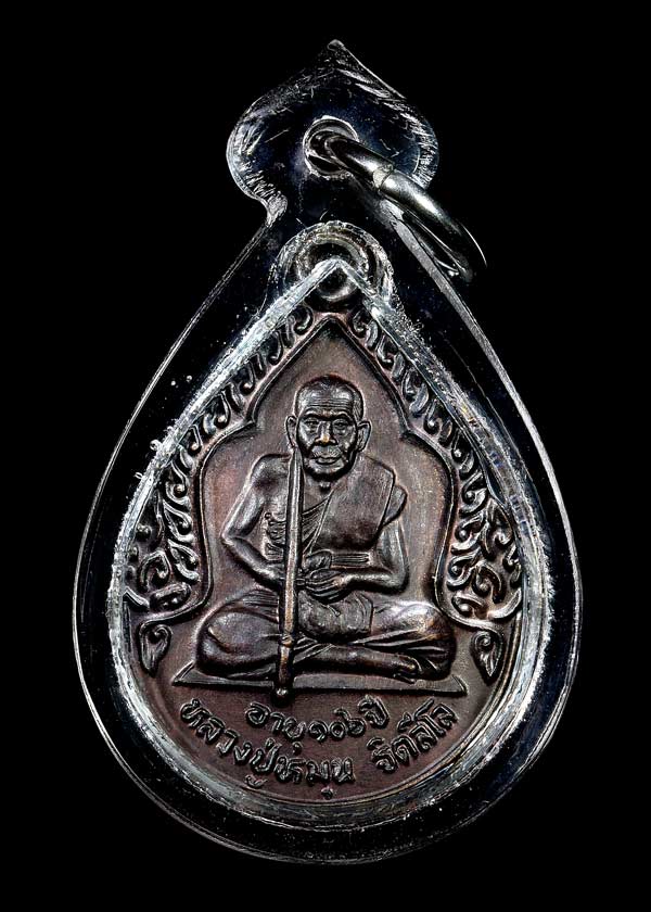 เหรียญหยดน้ำ หลวงปู่หมุน วัดบ้านจาน ออกวัดหงส์รัตนาราม ปี พ.ศ.2543 เนื้อทองแดงรมดำ สวยแชมป์