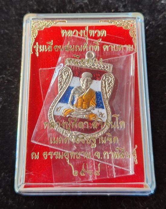 วัดใจ หลวงปู่ทวด หลวงปู่ศิลา เมตตาอธิษฐานจิต รุ่นเลื่อนสมณศักดิ์ เหนือดวง เนื้ออัลปาก้า ลงยาลายธงชาติ No.911 |