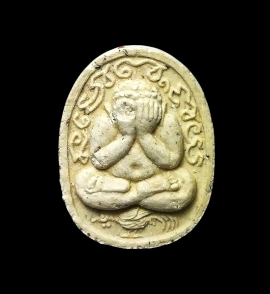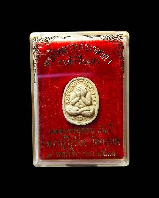 พระปิดตาพุทธเมตตา ทรงไก่ปีระกา เนื้อผงพุทธคุณ หลวงปู่วิเวียร วัดดวงแข ปี ๒๕๓๖ พร้อมกล่อง