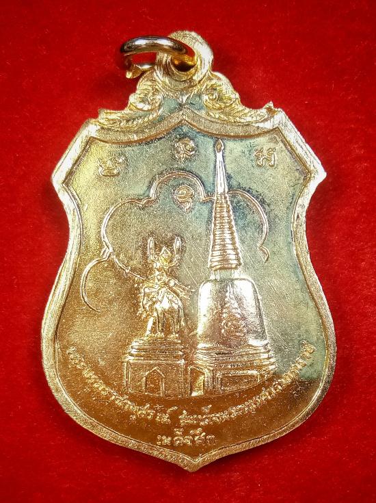 เหรียญ เผด็จศึก พระนเรศวรมหาราช หลังภปร วัดดอนเจดีย์ ปี 16....กะไหล่ทอง |