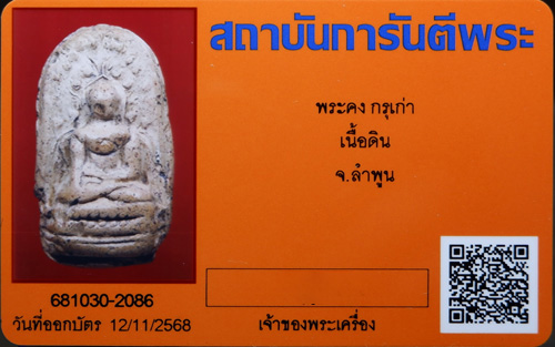 พระคงลำพูน กรุเก่า เนื้อดิน จ.ลำพูน กลุ่มโพธิ์ชัดสวย สมบรูณ์ ดูง่าย + บัตรรับรอง G-PRA