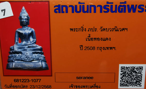 พระกริ่งภปร. วัดบวรนิเวศฯ เนื้อทองแดงรมดำ กริ่งดัง ตะไบหยาบ ปี2508 จ.กรงเทพฯ + บัตรG-pra สภาพเดิมค่ะ สภาพตามรูปทุกประการค่ะ