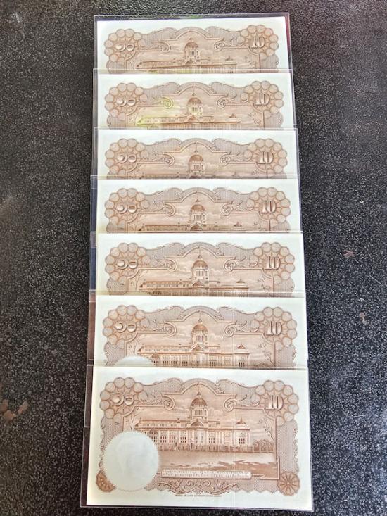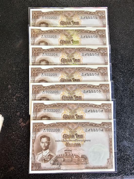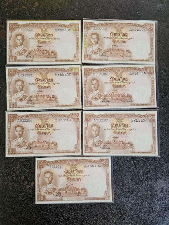 ธนบัตร รัชกาลที่ 9 ชนิดราคา 10 บาท แบบ 9 (โทมัส) สภาพสวย เลขเรียงสวยๆ จำนวน7ใบ เคาะเดียว ไม่มีรอยพับ ไม่มีรอยย่น |