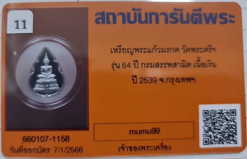 @## เหรียญพระแก้วมรกต เนื้อเงินขัดเงาบริสุทธิ์ 99.99 เปอร์เซ็นต์ พร้อมบัตรรับรอง กรมสรรพสามิตจัดสร้างขึ้นเนื่องในโอกาสครบรอบ 64 ปีของกรมสรรพสามิต และเนื่องในวโรกาสที่พระบาทสมเด็จพระเจ้าอยู่หัวทรงครองราชย์ครบ 50 ปีในปีกาญจนาภิเษก เมื่อ พ.ศ.2539