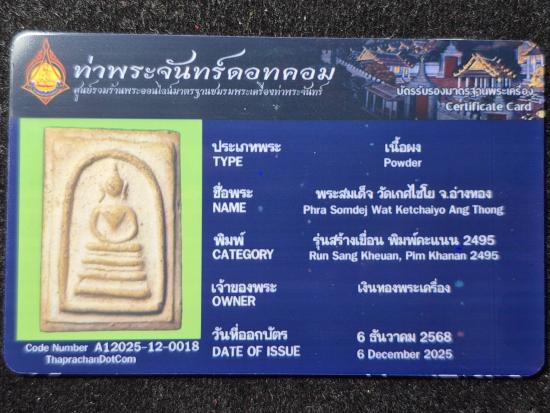 พระสมเด็จวัดเกศไชโย รุ่นสร้างเขื่อน พิมพ์คะแนน ปี2495 สภาพสวย พร้อมบัตรรับรองพระแท้