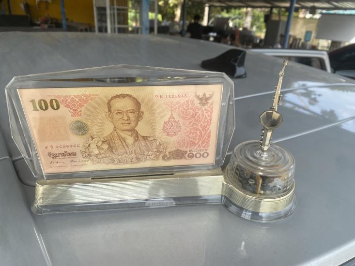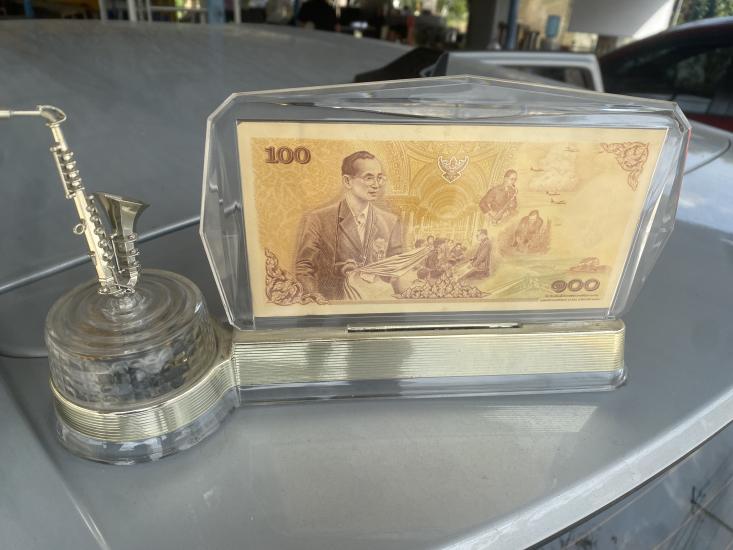 ธนบัตรที่ระลึกเฉลิมพระชนมพรรษา 7 รอบ พร้อมชุดกรอบอะครีลิค + แซกโซโฟน + กล่องดนตรีเพลงพระราชนิพนธ์เพราะๆ หายาก ตั้งโชว์สวยงาม