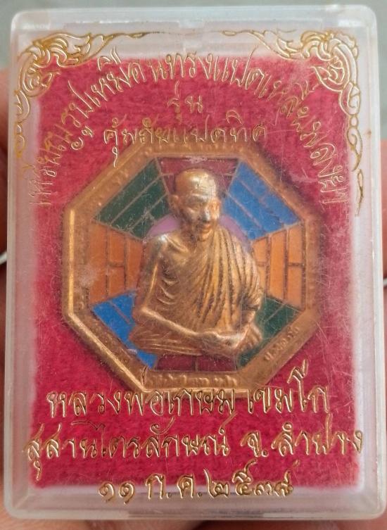 เคาะเดียวแดง.....(2)เหรียญแปดเหลี่ยม หลวงพ่อเกษม เขมโก สุสานไตรลักษณ์ ปี 38 รุ่นคุ้มภัยแปดทิศ กะไหล่ทองลงยา พร้อมกล่องเดิม