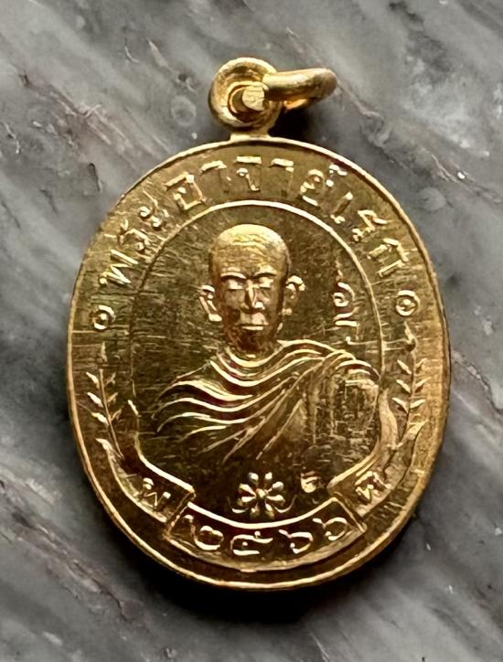 เหรียญปั๊มครึ่งองค์ พิมพ์เล็ก พระอาจารย์อดิเรก อนุตตโร วัดหนองทราย จ.สุพรรณบุรี รุ่น ฉลองวิหาร ปี2566 เนื้อกะไหล่ทอง |