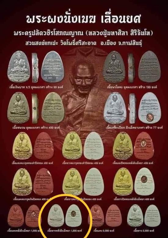 พระผง นั่งเมฆ ยุคต้น ปี64 หลวงปู่มหาศิลา หลวงปู่ศิลา สิริจันโท วัดโพธิ์ศรีสะอาด สวนสงฆ์แกเปะ จ.กาฬสินธุ์ เนื้อผงขาว ฝังเม็ดยา เลข ๑๘๑๑ เลี่ยมกันน้ำ ไม่มีกล่องเดิม |
