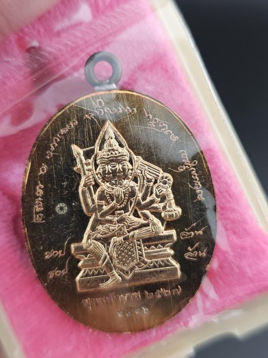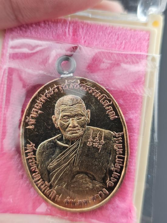 หลวงปู่มหาศิลา เหรียญแกะสด ห่วงเชื่อม ไหว้ครูปี2567 รุ่น ยอดบารมี เนื้อมหาชนวนทองแดงผิวรุ่ง หลังหน้ากากพรหมทองสำเร็จ ใบฝอย+กล่องครบ เลข1416