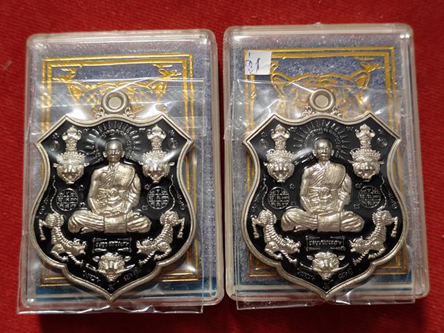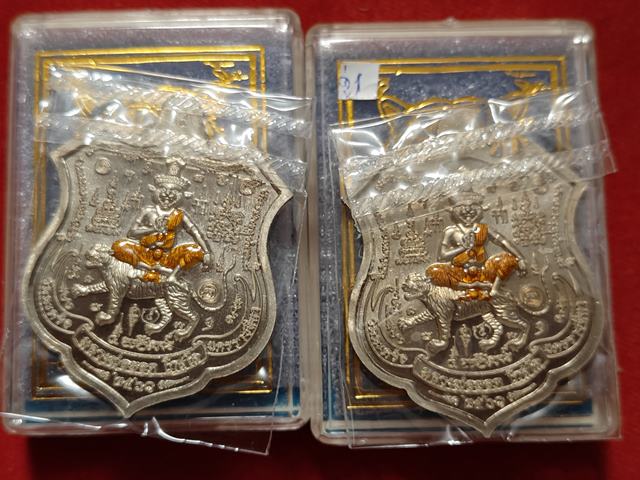 (2องค์) คู่ที่1 เนื้ออัลปาก้าลงยาดำ หลังฤาษีจีวร เหรียญ ๕ พยัคฆ์ หลวงพ่อยอด วัดตะคร้อ อำเภอโนนไทย จังหวัดนครราชสีมา |