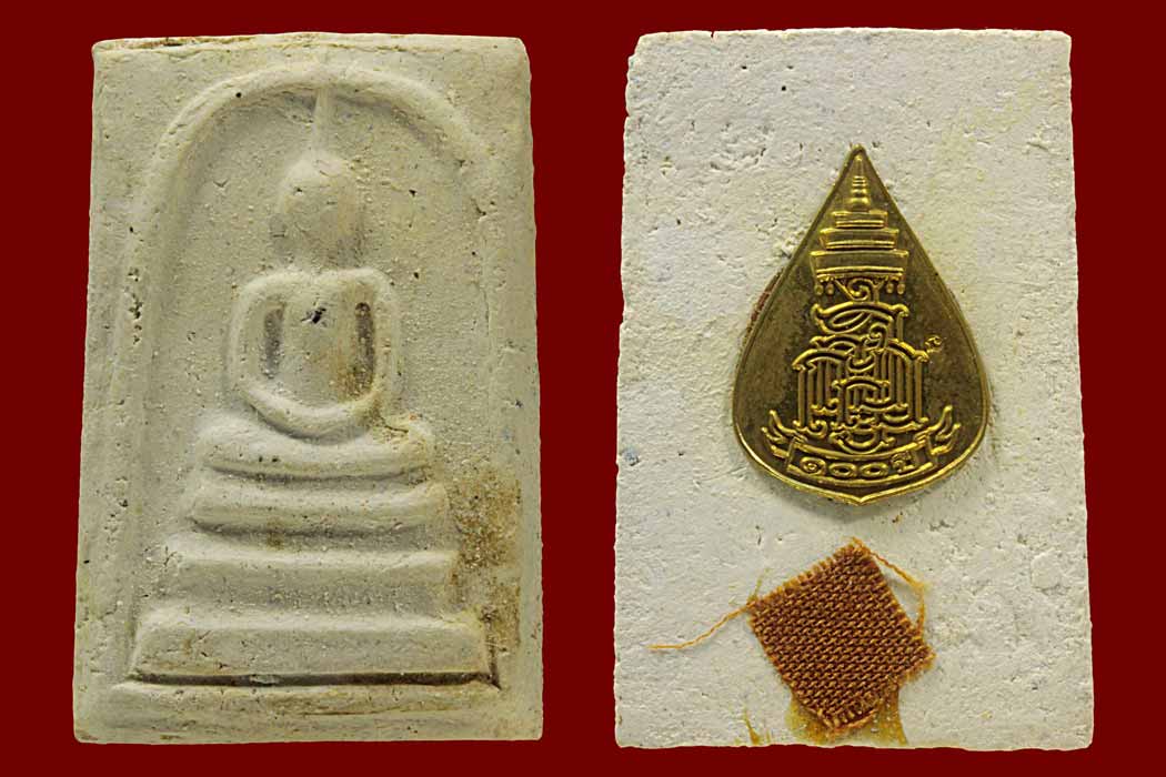 วัดใจ 2 องค์ พระสมเด็จ 100 ปี หลังแผ่นตราสัญลักษณ์ ญ ส ส. 100 ปี ติดจีวร พร้อมกล่อง |
