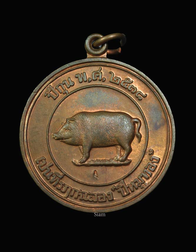 เหรียญหมู ที่ระลึกปีหมูทอง ปี 2538 เนื้อทองแดง หลวงพ่อสาคร วัดหนองกรับ |