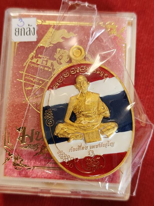 วัดใจ...เนื้อกะไหล่ทอง ลงยาธงชาติ เลข3 (แจกยกลัง และผู้ช่วยงาน) เหรียญ มนต์พระกาฬ รุ่นแรก