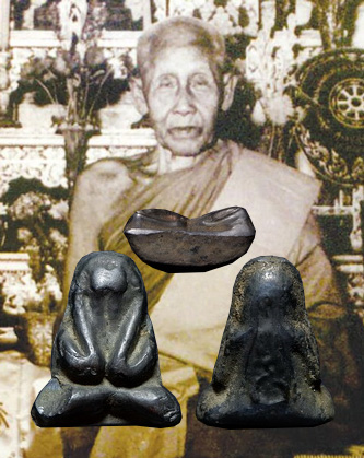 พระปิดตา หลวงปู่ใจ วัดเสด็จ หลังยันต์อุ "มหาอุตม์" พิมพ์สุดหายาก เนื้อเมฆพัตร ยุคต้น ปี2472 จ.สมุทรสงคราม + บัตรรับรอง G-PRA
