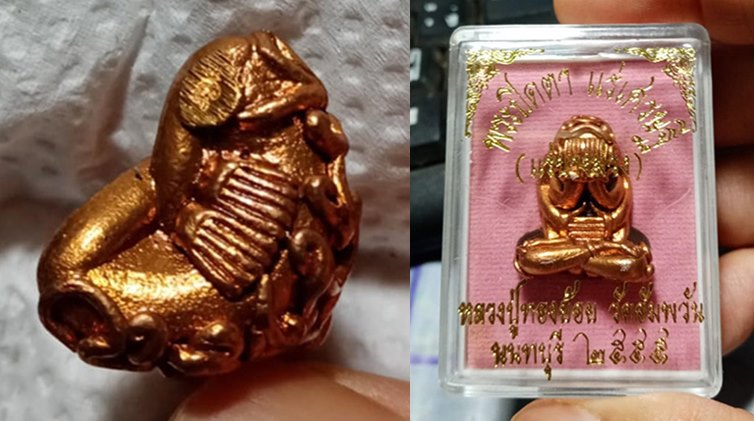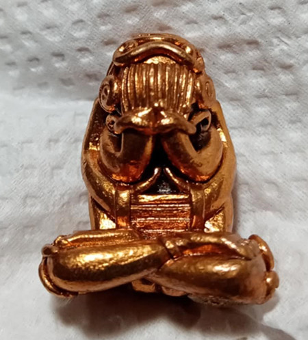 พระปิดตา แร่โคตรเศรษฐี ซึ่งผสมแร่บางม่วง และทองคำ เงิน เนื้อจึงเป็นสีทองดอกบวบ หายากมาก เพราะแร่มีจำนวนน้อย สร้างได้เท่าที่แร่มีอยู่เท่านั้น |