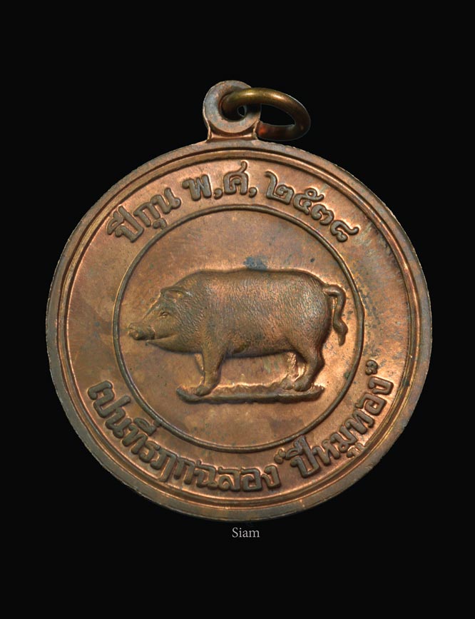 เหรียญหมู ที่ระลึกปีหมูทอง ปี 2538 เนื้อทองแดง หลวงพ่อสาคร วัดหนองกรับ |