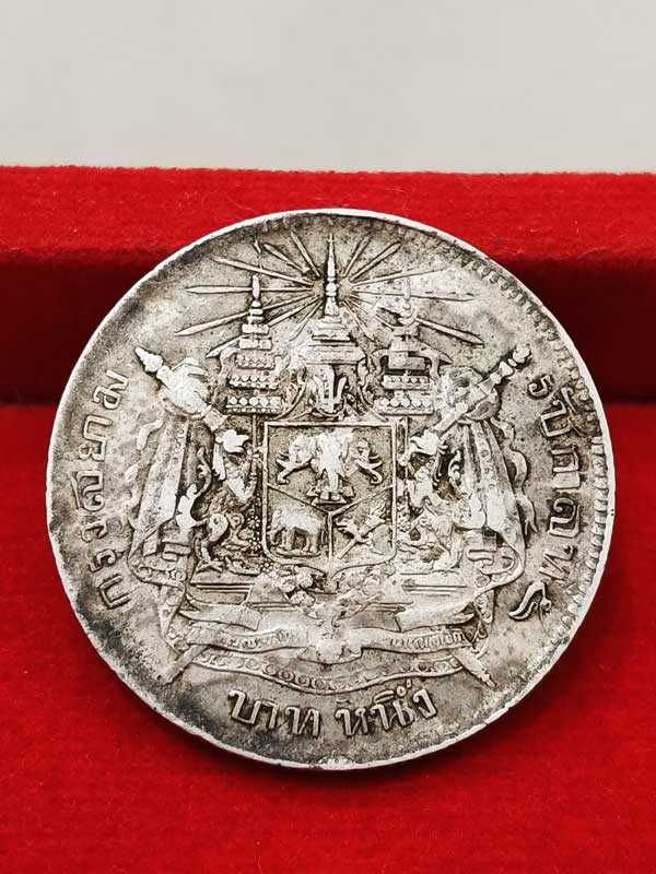 เหรียญ ร.5 หนึ่งบาท หลังตราแผ่นดิน เนื้อเงิน