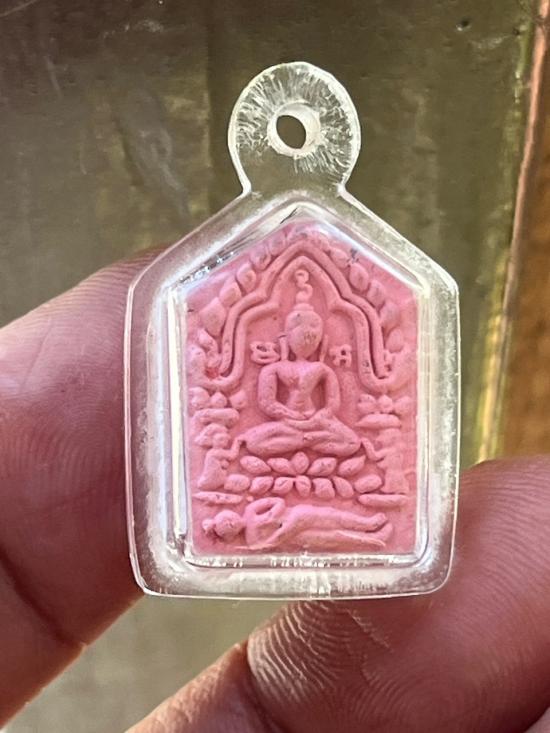 พระขุนแผนผงพรายกุมารย้อนยุค 2557 เนื้อชมพูตะกุดเงิน พิมพ์เล็ก หมายเลข ๑๕๕๑ เคาะเดียว