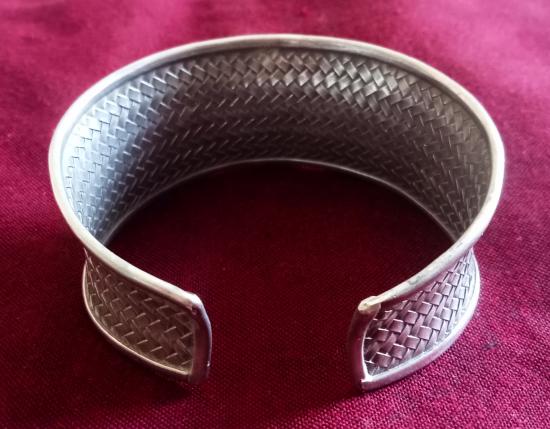 กำไลเงินสานลายกระติ๊บ งานฝีมือรุ่นเก่า งานประณีดงามมาก น้ำหนักประมาณ 3 บาท หน้าใหญ่กว้างประมาณ 1 นิ้ว 3 หุ่น วงกว้างประมาณ 2 นิ้ว 5 หุ่น (เลย 2.5 นิ้ว) ส่งฟรีทั่วไทย รับประกันตามกฎครับ |