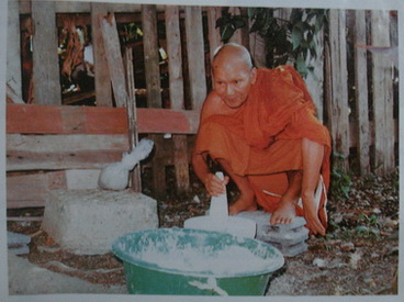 เนื้อผงพุทธคุณ หลวงพ่อได้นำมวลสารต่างๆจากการเดินทางไปอินเดีย นำมาผสมกดพิมพิ์เองที่วัด จำนวนการสร้างจึงมีไม่มากครับ |