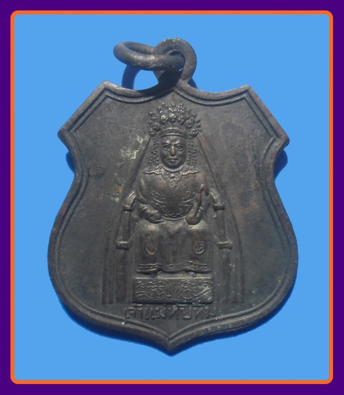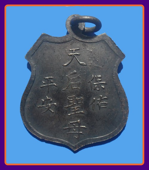 สวยมาก ห่วงเชื่อมเดิม-500-เหรียญเจ้าแม่ทับทิม ศาลสำเพ็ง รุ่นแรก พศ.2492 เนื้อทองแดงรมดำ |