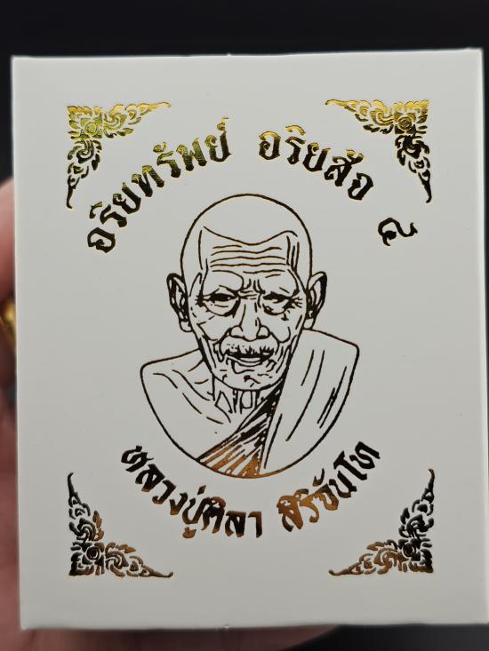 หลวงปู่มหาศิลา รุ่นแรก สวนธรรมปิติ อริยทรัพย์ อริยสัจ4 ล็อกเก็ตฉากทองหลังอุดมวลสารประกบหลังเหรียญทองแดงซาติน เลข 1367 |