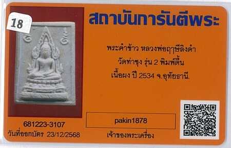 พระคำข้าว รุ่น 2 หลวงพ่อฤาษีลิงดำ วัดท่าซุง จ.อุทัยธานี |