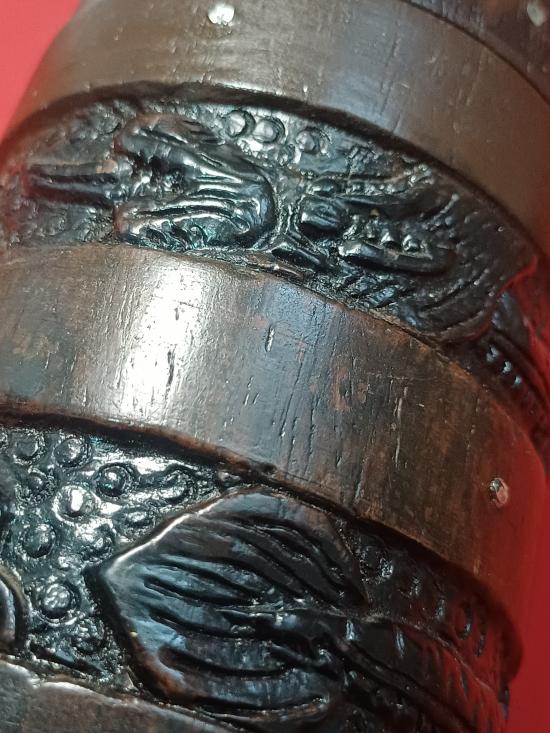 กระปุกไม้แกะลายมังกร สูง19ซม.กว้าง7ซม. ฝาจุกเป็นเงินและฝังหมุดรอบๆเงิน22เล่ม ของดีเป็นมงคลครับ แดงเดียวจัดส่งems |