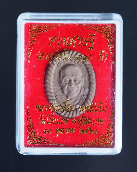 พระผงผงดวงเศรษฐี เกลี้ยงหนี้ อายุวัฒโน 110 ปี หลวงปู่เกลี้ยง เตชฺธมฺโม เจ้าอาวาสวัดโนนแกด เนื่องในโอกาสที่ หลวงปู่เกลี้ยง เตชฺธมฺโม (พระครูโกวิทพัฒโนดม) จะมีสิริอายุครบ 110 ปี ในวันอังคาร ที่ 10 ตุลาคม 2560