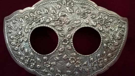 หัวรัดผ้าซิ่นเงินแท้ ลายช่อดอกไม้เถาเครือวัลย์ ขนาดประมาณ 4.5 X 3 นิ้ว น้ำหนักประมาณ 35.37 กรัม หรือ ประมาณ 2 บาท 1 สลึง 1 เฟื้อง ตอกลายละเอียดสวยมาก งานแข็งแรงทนทานและงดงามครับ ส่งฟรีทั่วไทย รับประกันตามกฎครับ |