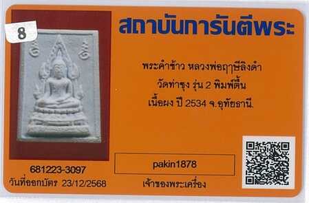 พระคำข้าว รุ่น 2 หลวงพ่อฤาษีลิงดำ วัดท่าซุง จ.อุทัยธานี |