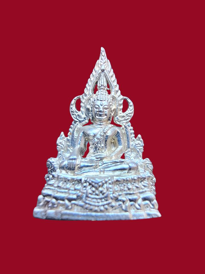 พระรูปหล่อพระพุทธชินราชเนื้อเงินประมาณปี 2533 ถึง 2536 ใต้ฐานตอกโค๊ตเนื้อเงินเปอร์เซ็นต์สูงสวยเดิมรับประกันตามกฎน้ำหนัก 2.5 กรัม |