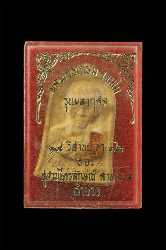 รุ่นมหากุศล อย.นี้ คุณสุธันย์ สุนทรเสวี จัดสร้างเมื่อปี พ.ศ. 2532 วัตถุประสงค์เพื่อประโยชน์ในการพัฒนาสถานีอนามัยวัดน้อยแสงจันทร์ สมุทรสงคราม โดยวัตถุมงคลชุดนี้สร้างจากมวลสารอันศักสิทธิ์มากมาย และนำจีวรของหลวงพ่อเกษมมาติดยังองค์พระเป็นพิเศษด้วย โดยพิธีอธิษฐานจิตจัดขึ้นเมื่อวันวิสาขบูชา ตรงกับวันที่ 19 พฤษภาคม 2532 ในพิธีมหากุศลของสำนักงานคณะกรรมการอาหารและยา กระทรวงสาธารณสุข เมื่อเวลาประมาณ 2 ทุ่ม 9 นาที หลวงพ่อเกษมได้เมตตาอธิษฐานจิตให้อย่างยาวนานเป็นที่สุดเกือบหนึ่งชั่วโมง เต็ม และในขณะเดียวกัน หลวงปู่ดู่ พรหมปัญโญ วัดสะแก อยุธยา ก็ได้เริ่มเดินญาณส่งจิตมายังมณฑลพิธี เพื่อร่วมเสกใครั้งนี้ตามที่คุณสุธันย์ได้นิมนต์ไว้ มีเกล็ดสำคัญเพิ่มเติมในการนี้อีกเล็กน้อยครับ คือในบันทึกลายมือของหลวงพ่อเกษม เขมโก ถึงการอนุญาตในการจัดสร้างครั้งนี้ โดยหลวงพ่อได้กล่าวไว้ว่า "หลังจากได้ทำพิธีแล้ว ของดการทำพิธีต่างๆ อีกต่อไป" นั่นแสดงว่าหลวงพ่อเกษมท่านมุ่งมั่นต่อการปฏิบัติธรรมเป็นสารัตถะโดยแท้ จนเมื่อถึงกาลอันควรแล้วท่านจึงเมตตาอธิษฐานจิตมนวัตถุมงคลอื่นๆ ให้ตามสมควรแก่ประโยชน์แห่งสาธารณชนครับ