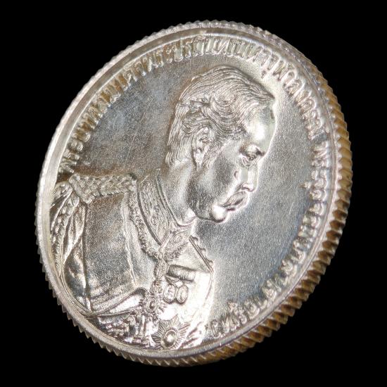 เหรียญรัชกาลที่ ๕ เนื้อเงิน ตอกโค๊ต "ดี" พิมพ์ใหญ่ หลวงปู่ดี วัดพระรูป สุพรรณบุรี พร้อมตลับใส่เหรียญจากวัด |