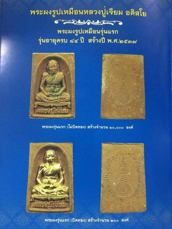 พระผงรูปเหมือนรุ่นแรกหลวงปู่เจียม อติสโย เนื้อลองพิมพ์หลังปั้มตรา จ.จาน ปี2537 |