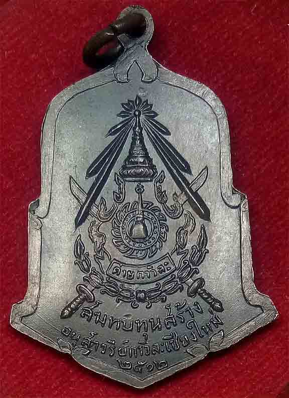 สร้างโดย กรมทหารราบที่ 7ค่ายกาวิละ เชียงใหม่ นำเข้าพุทธาภิเษก วัดพระสิงห์ปี 2512 พิธีมหาพุทธาภิเษก พระบาทสมเด็จพระเจ้าอยู่หัวทรงเป็นประธานในพิธีเททอง พิธีพุทธาภิเษกครั้งนี้ จัดขึ้นเมื่อวันที่ 15 มกราคม พ.ศ.2512 ณ.วิหาร วัดพระสิงห์วรมหาวิหาร พระอารามหลวง มี พ.ต.อ นิรันดร ชัยนาม ผู้ว่าราชการจังหวีดเชียงใหม่ เป็นประธาน กรรมการจัดสร้างฯ ได้กราบบังคมทูลฯ ขอพระราชทานพระบรมราชวโรกาส พระบาทสมเด็จพระเจ้าอยู่หัว เสด็จทรงเป็นองค์ประธานในพิธีเททอง และนมัสการ สมเด็จพระวันรัต เป็นประธาน ในพิธีเททอง เพื่อจัดหาทุนสร้างสถูปเจดีย์สมเด็จพระนเรศวรมหาราชานุสรณ์ ณ.บ้านเมืองงาย อ.เชียงดาว จ.เชียงใหม่ รายนามพระเกจิอาจารย์ ประกอบพิธีพุทธาภิเษก หลวงพ่อคล้าย วัดจันดี นครฯ.,หลวงพ่อเจีย วัดพระเชตุพนฯ กทม.,พระครูวิริยะกิติ (โต๊ะ) วัดประดุ่ฉิมพลี, หลวงพ่อเส่ง วัดกัลยาณมิตรกทม., ประครูปลัดสงัด วัดพระเชตุพนฯ , หลวงพ่อก๊ก วัดดอนขมิ้นกาญจนบุรี, หลวงพ่ออั้น วัดพระญาติการาม , หลวงพ่อแจ่ม วัดวังแดงเหนือ อยุธยา, หลวงพ่อนอ วัดท่าเรือ, หลวงพ่อเทียม วัดกษัตรา อยุธยา, หลวงพ่อคง วัดบ้านสวน พัทลุง, หลวงพ่อนำ วัดดอนศาลา , หลวงพ่อเล็ก วัดดินแดง นครปฐม, หลวงพ่อพริ้ง วัดโบสถ์ ลพบุรี, หลวงพ่อชื่น วัดตำหนักเหนือ นนทบุรี, หลวงพ่อทิม วัดช้างให้ , หลวงพ่อแดง วัดบางเกาะเทพศักดิ์ สมุทรสงคราม ,หลวงพ่อจ้วน วัดเขาลูกช้าง เพชรบุรี, หลวงพ่อเตียง วัดเขารูปช้าง พิจิตร , หลวงพ่อจ้อน วัดเจ็ดริ้ว สมุทรสาคร, พระวิบูลย์เมธาจารย์ วัดดอนเจดีย์ , พระอาจารย์สมคิด วัดรังโฆษิตาราม สุพรรณฯ, พระราชมุนี วัดปทุมวนาราม กทม., พระอริยเมธี วัดปทุมฯ กทม,พระครูพุทธิวัฒน์ วัดธรรมจักร พิษณุโลก , พระครูอภัยจริยานิยม (ตุ้ย) วัดใหม่ พิษฯุโลก, ครูบาวัง วัดบ้านเด่น ตาก, พระราชวิสุทธิ วัดสวนดอก ลำปาง , พระอาจารย์สม วัดหัวข่วง ลำปาง,พระอาจารย์ชุม วัดเกาะ ลำปาง, หลวงพ่อเมือง วัดท่าแหน ลำปาง, พระราชปัญญาโสภณวัดราชนัดดา ,พระครูพิทักษ์วิหารกิจ วัดราชนัดดา, หลวงพ่อเปี่ยม วัดเทพธิดา กทม., พระพิธีธรรม 4 รูป วัดราชนัดดา กทม. , พระพิธีธรรมรามัญ 4 รูป วัดตำหนักเหนือ นนทบุรี , พระพิธีธรรมภาคพายัพ สำนักจังหวัดเชียงใหม่ เจ้าพิธีในการประกอบพิธีพุทธาภิเษก พระอาจารยืไสว สุมโน วัดราชนัดดารามวรวิหาร กทม. |