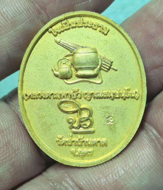 หลวงตามหาบัว วัดป่าบ้านตาด อุดรธานี รุ่นใจเป็นประธาน เนื้อกะไหล่ทอง แจกผู้ร่วมทำบุญผ้าป่าช่วยชาติเหรียญรุ่นนี้มีพุทธคุณ ด้านเมตตามหานิยม ด้านการค้าขายร่ำรวย ด้านความเจริญก้าวหน้า ด้านแคล้วคลาด ด้านโชคลาภ ด้านปลดหนี้รุ่นนี้มีประสบการณ์เกิดขึ้นกับผู้ที่ห้อยบูชาเหรียญรุ่นนี้(รุ่นนี้คนบริจาคทองเยอะเพราะจะนำไปปลดหนี้ให้กับประเทศจึงจัดผ้าป่าช่วยชาติ) ด้านส่งเสริมดวงชะตาชีวิตด้านการเงินให้มีเงินไหลเข้ามือไม่ขาดสน นานๆจะมีมาให้เห็นสักองค์ครับเหรียญรุ่นนี้สร้างน้อยและค่อนข้างหายาก |