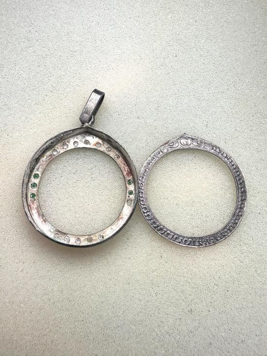 กรอบเงินแท้ลงยา พร้อมใช้งานใบนี้สวยคลาสสิคมากค่ะ น้ำหนัก9.80กรัม ขนาดวัดจากด้านในกรอบ มีรูปเพิ่มเติมด้านล่างค่ะ |